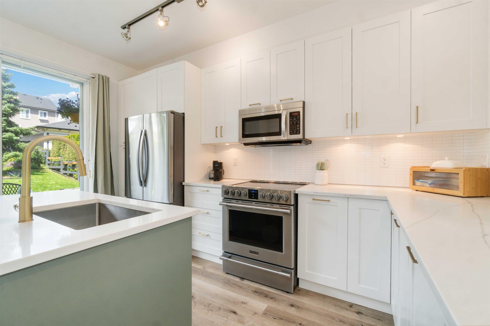 Welcome to TATTON, located in the highly desirable Burke Mountain! This BEAUTIFULLY UPDATED south facing end unit offers 4 bedrooms, 4 bathrooms, and a *BONUS* REC ROOM/5th bedroom, ensuring ultimate privacy with a view of Victoria Park. This Mosaic built home features: S/S appliances, quartz counters, vinyl floors on main, shaker cabinets, custom millwork & more! Main floor features open concept living and a MASSIVE WALK-OUT SUN DRENCHED backyard, the largest in the complex! Upstairs features 3 good sized bedrooms w/a LARGE PRIMARY with spa-like ensuite overlooking the park. Below you'll find a 4th bedroom and large REC ROOM with custom murphy bed, offering endless options. Steps to elementary and the future Burke Mountain Middle & Secondary, parks, coffee shop & future Burke Village.