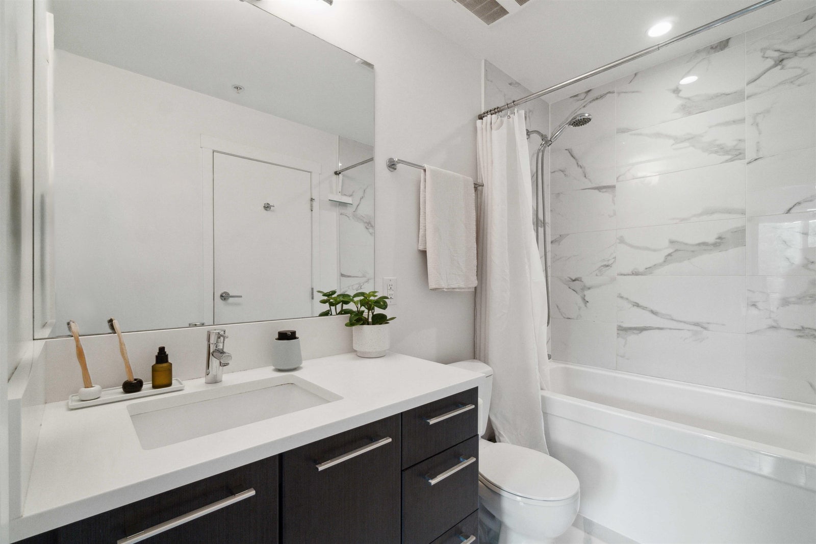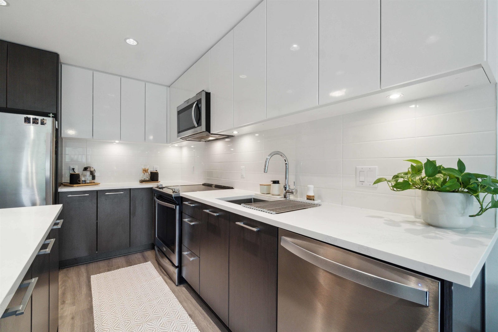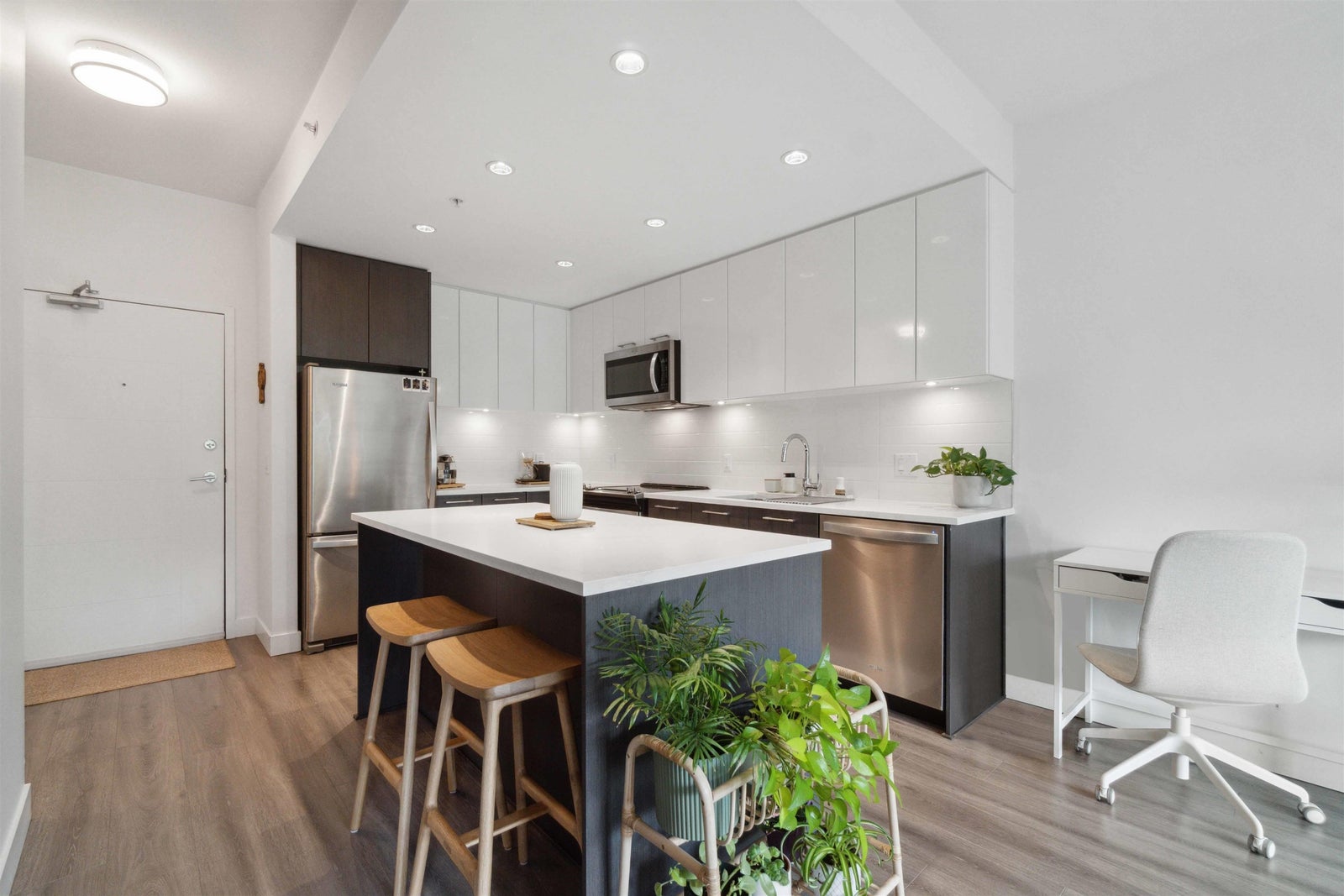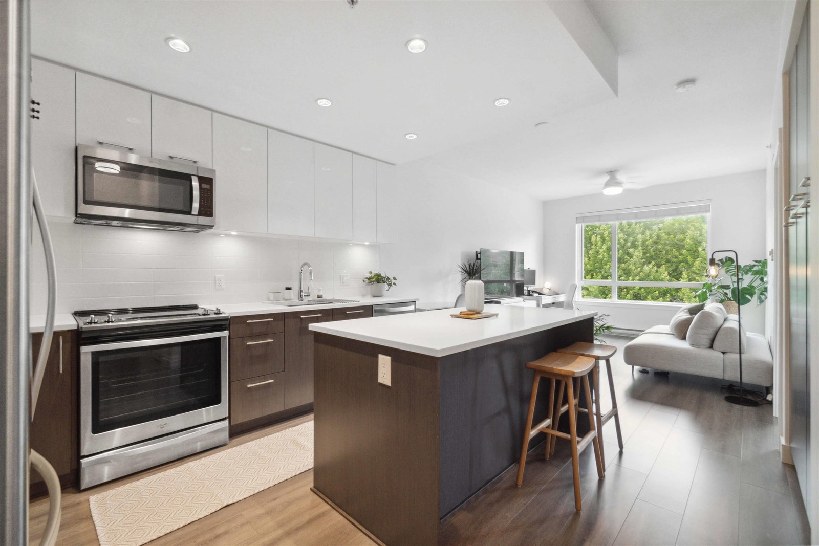 Welcome to PARC EAST, centrally located in Downtown Port Coquitlam! This gorgeous TOP FLOOR, 1 bedroom, 1 bathroom unit features an open concept layout that's perfect for entertaining, 9ft ceilings and plenty of large windows with loads of natural light. The kitchen comes fully equipped with a functional layout, modern cabinetry, MASSIVE ISLAND, quartz counters, ceramic tile backsplash and stainless steel appliances. Good sized bedroom with his/her closets. Centrally located and just steps away from schools, Gates Park, shopping, trails, restaurants, West Coast Express, the POCO rec centre and more! You don't want to miss this one!