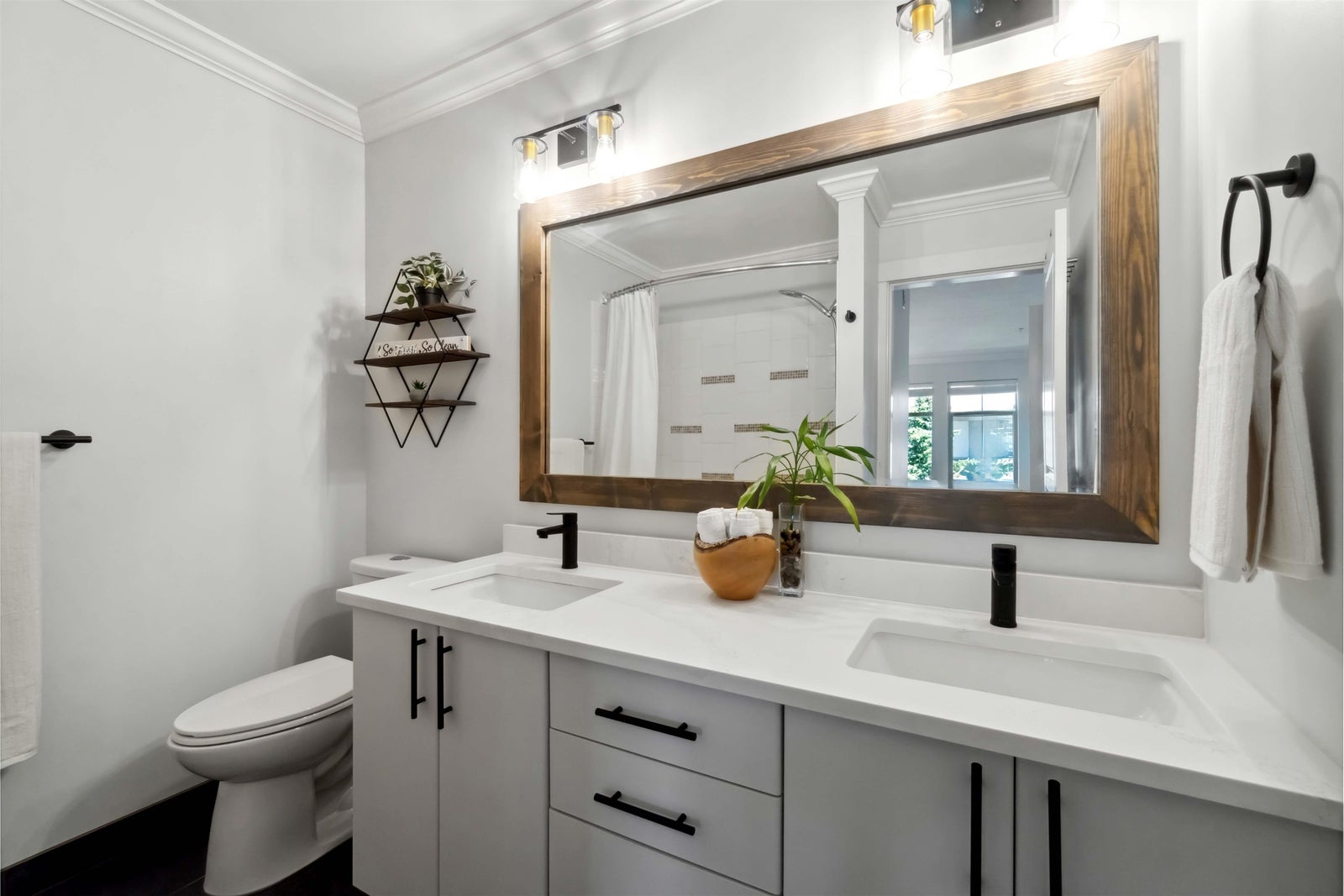Welcome to Whistler inspired SILVER SPRINGS at the foot of Westwood Plateau. This stunning FULLY RENOVATED, 2 bed, 2 bath TOP FLOOR unit is a MUST SEE! Features include: open concept living with large bedrooms on opposite sides for ultimate privacy, primary with custom walk-in closet, QUARTZ counters, gas range, s/s appliances, custom shelving, laminate flooring throughout, new paint, large patio, large windows, new blinds, updated lighting & much more...Well maintained complex w/HUGE contingency funds. RENTALS ALLOWED and PET FRIENDLY. Access to Cascade Club w/outdoor pool, exercise area, hot tub, theatre, BBQ & lounge areas. GREAT LOCATION mins from Coquitlam Centre, Lafarge lake, Douglas College, top ranked schools, rec centre & EVERGREEN LINE skytrain. This is a MUST SEE!