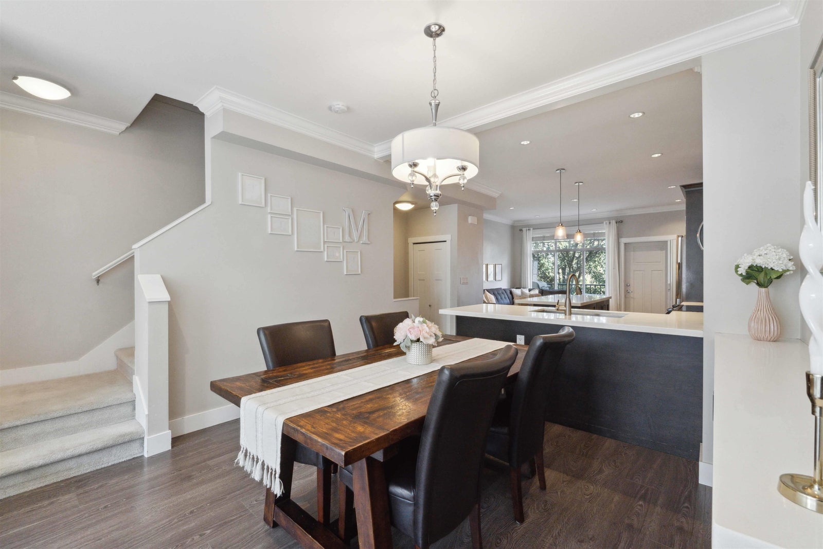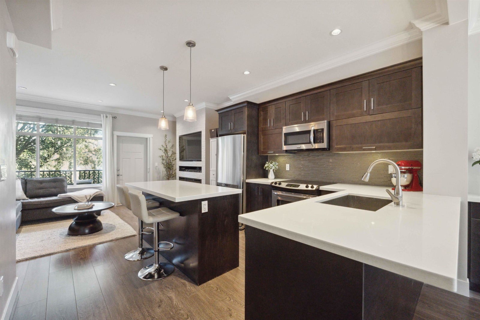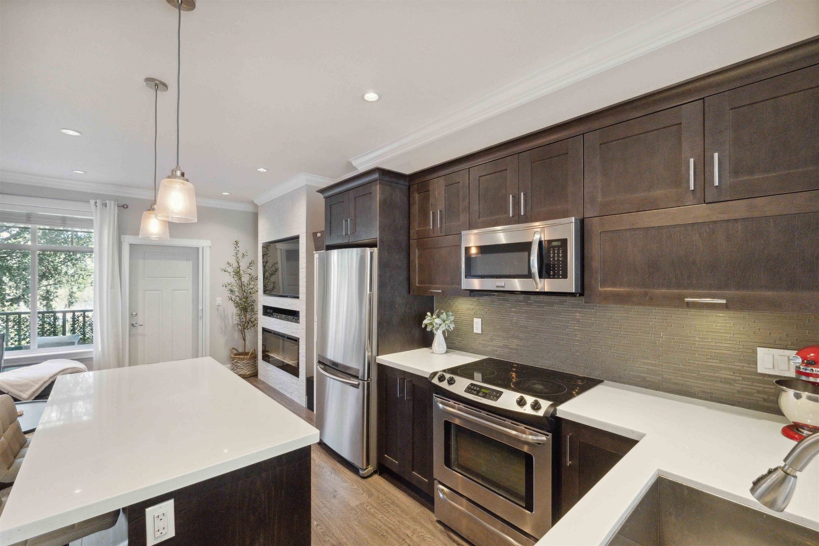 Welcome to THE BOARDWALK in sought-after PROVINCETON! This beautiful 3 bedroom, 2.5 bathroom townhouse is a MUST SEE! The main floor features open-concept living with large kitchen & island, stainless steel appliances & quartz counter tops. Beautiful stone fireplace, laminate flooring, crown mouldings, powder room on the main and 9 ft ceilings are an added bonus! Upstairs boasts a large primary bedroom with room for a king size bed, large closet with built-in organizers & double wide tile shower in ensuite. Outside, enjoy one of the LARGEST backyards in the complex with plenty of privacy. Generous sized double tandem garage, lots of visitor parking and within WALKING DISTANCE to the future Skytrain, Adams Road Elementary, Ecole Salish Secondary, Shopping, Recreation, Parks & more!
