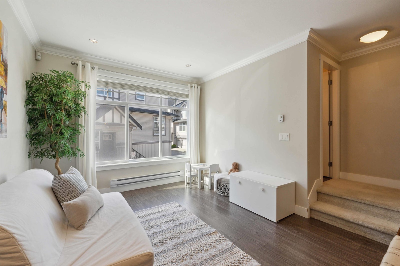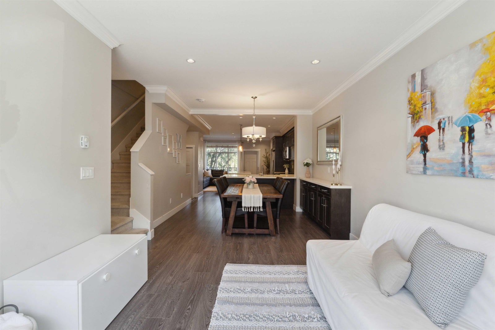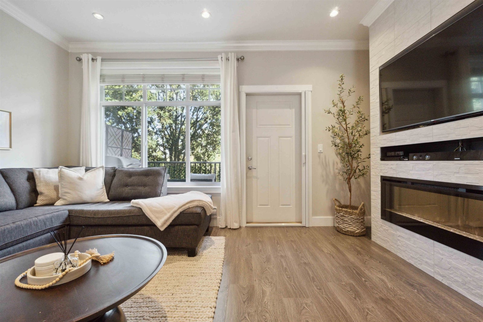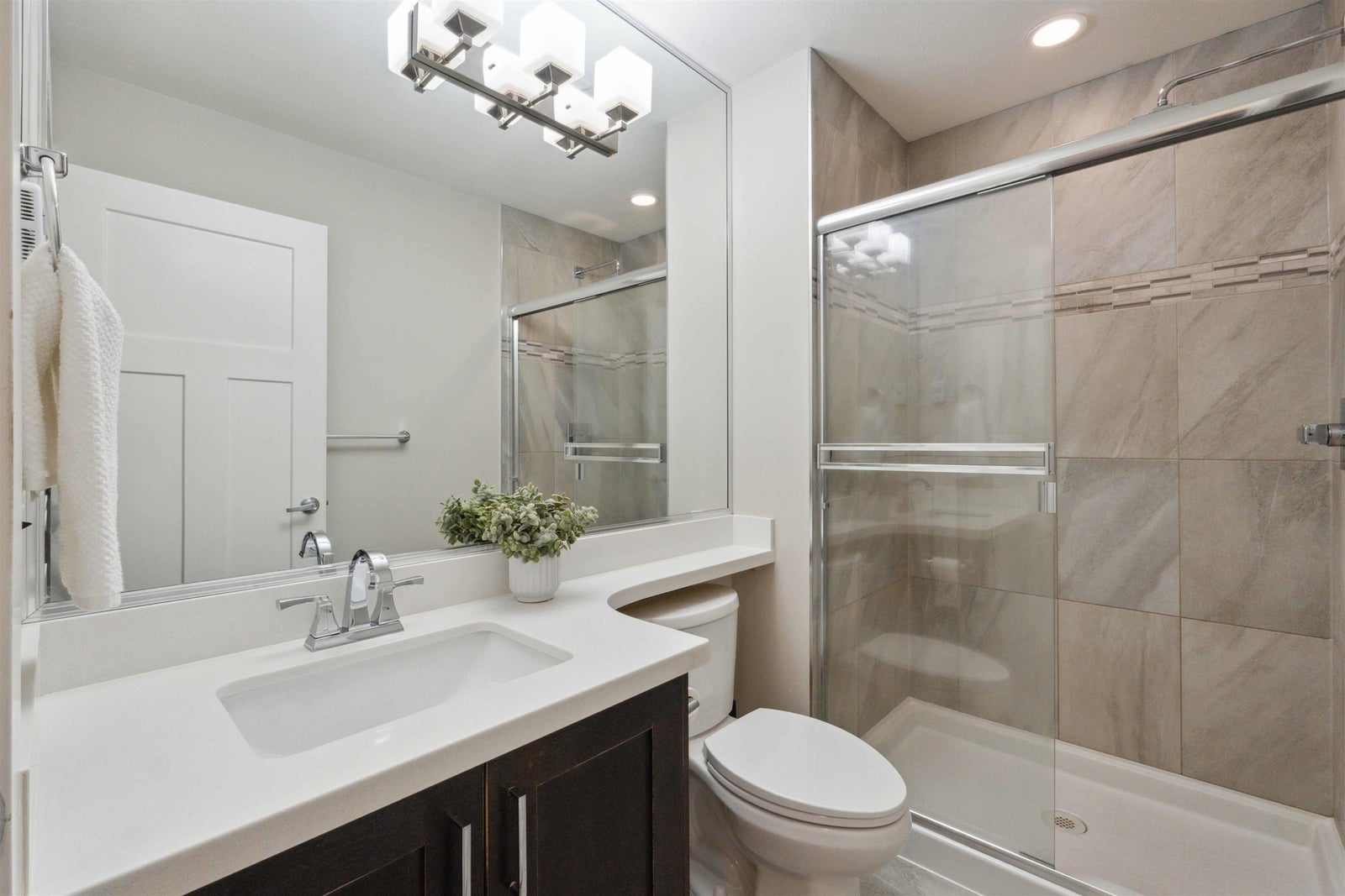 Welcome to THE BOARDWALK in sought-after PROVINCETON! This beautiful 3 bedroom, 2.5 bathroom townhouse is a MUST SEE! The main floor features open-concept living with large kitchen & island, stainless steel appliances & quartz counter tops. Beautiful stone fireplace, laminate flooring, crown mouldings, powder room on the main and 9 ft ceilings are an added bonus! Upstairs boasts a large primary bedroom with room for a king size bed, large closet with built-in organizers & double wide tile shower in ensuite. Outside, enjoy one of the LARGEST backyards in the complex with plenty of privacy. Generous sized double tandem garage, lots of visitor parking and within WALKING DISTANCE to the future Skytrain, Adams Road Elementary, Ecole Salish Secondary, Shopping, Recreation, Parks & more!
