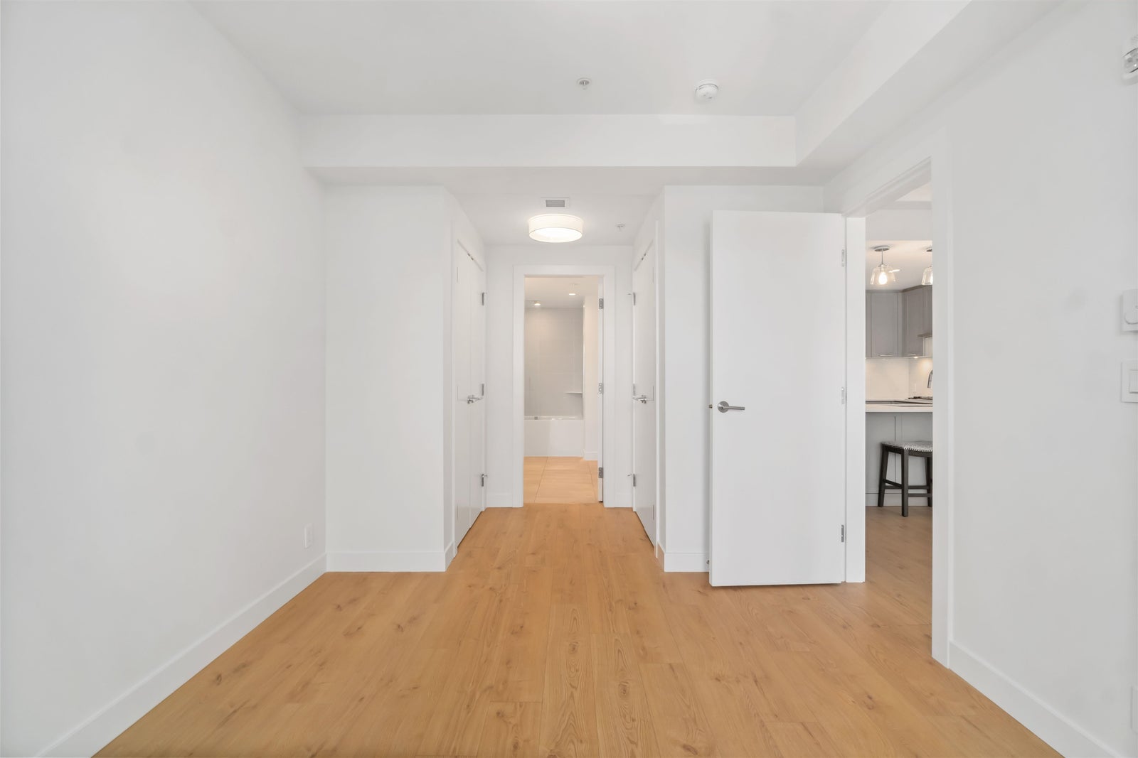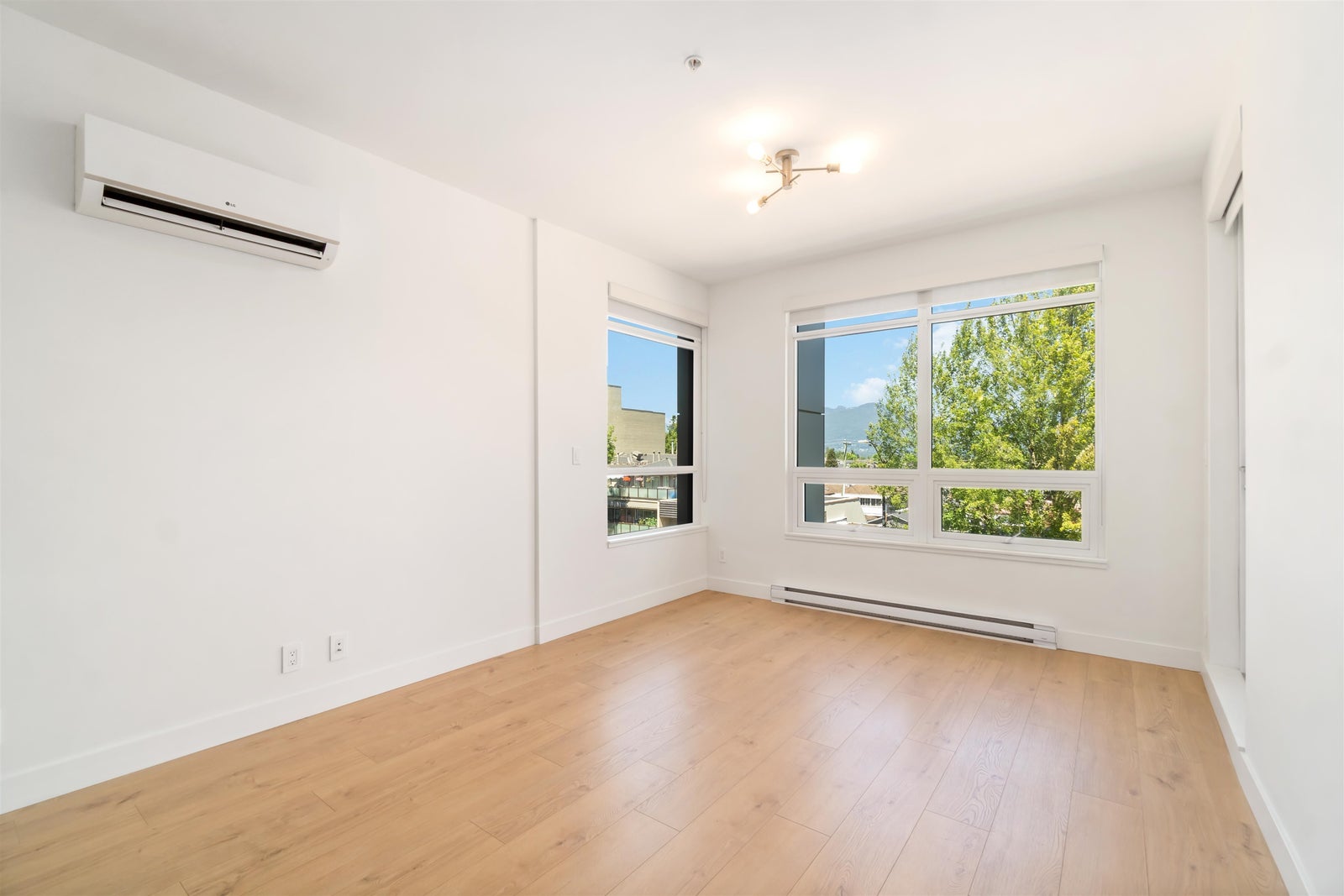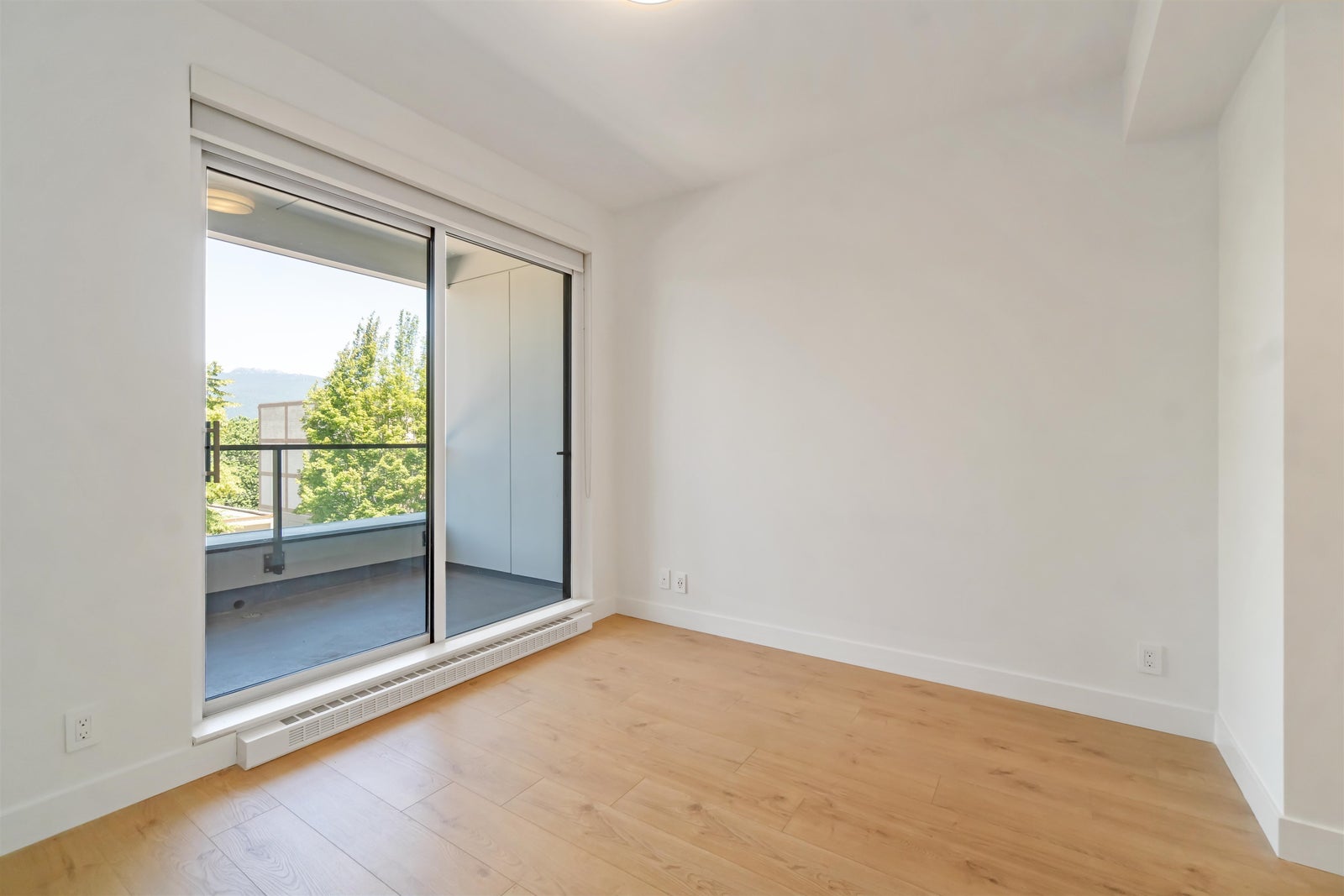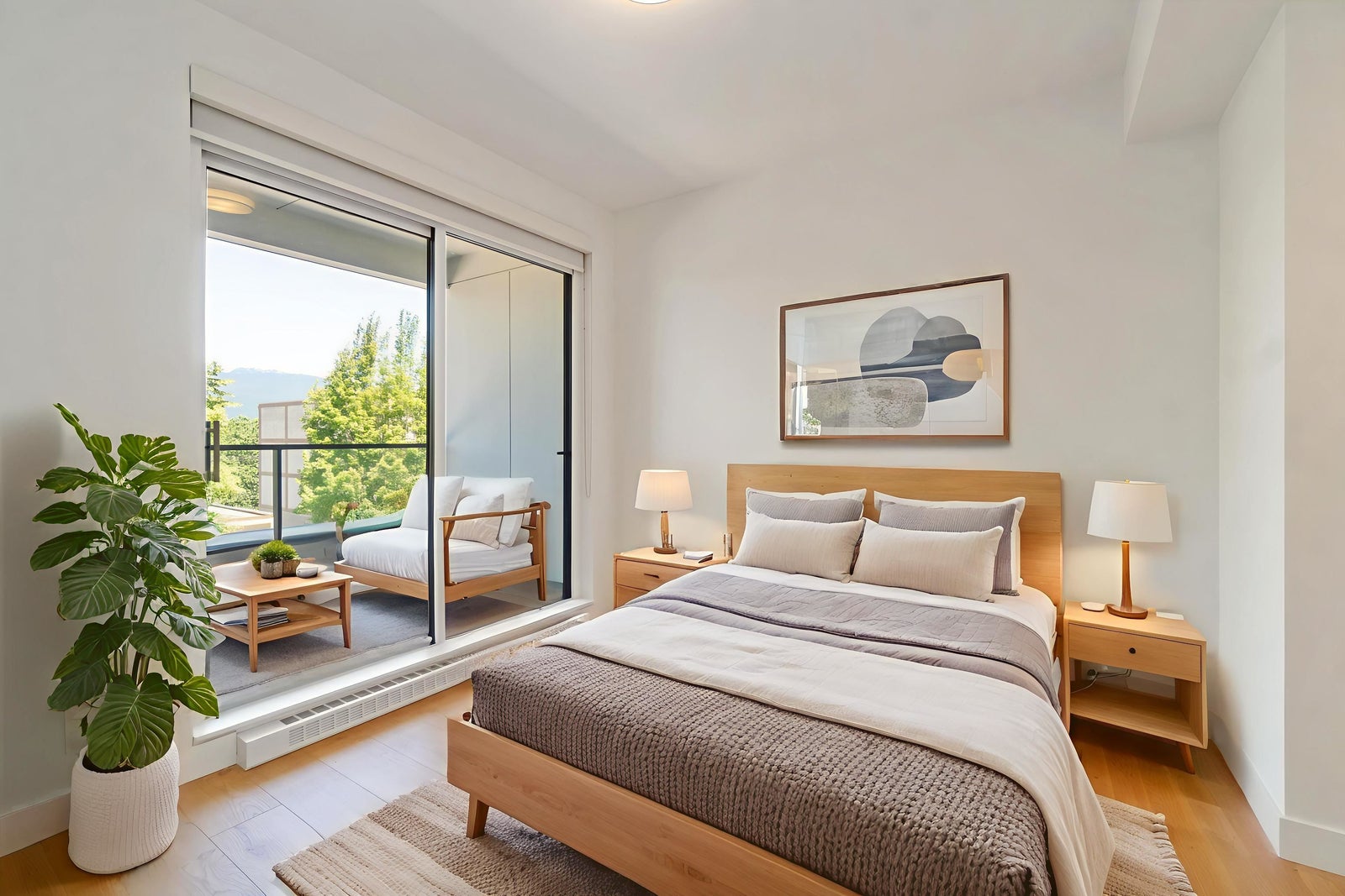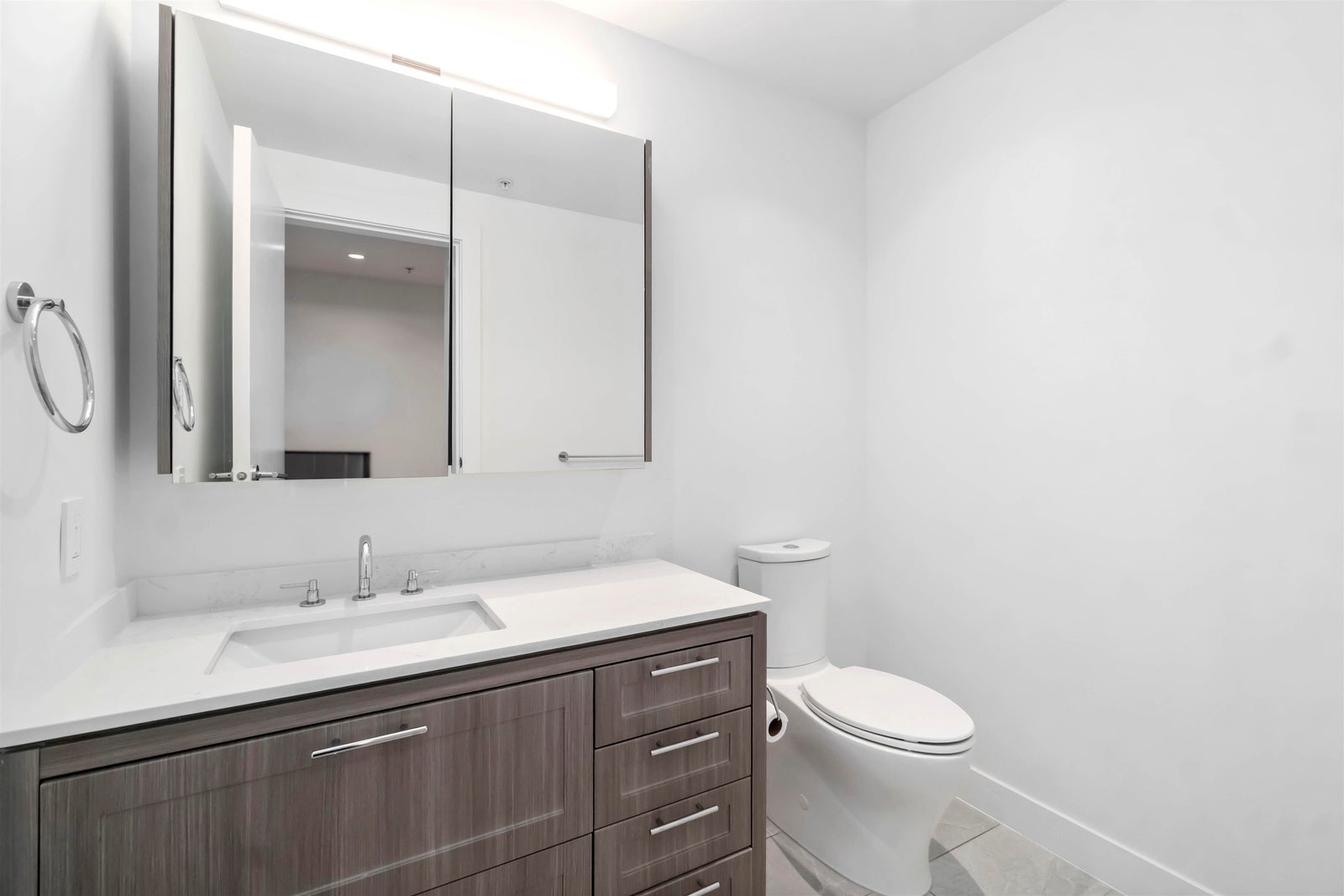 Welcome to Storia by Beedie Living, ideally located in the heart of Burnaby’s vibrant Heights District. This 1198 sq ft 2 bed + den, 3 bath home offers a functional, open concept layout with 9' ceilings, AIR CONDITIONING, roller shades, shaker style cabinets, quartz counters and laminate flooring throughout. The spacious primary bedroom features a walk-through closet and spa-inspired 5-piece ensuite with in-floor heating. Enjoy a chef-inspired kitchen with integrated appliances, wall oven, and pantry. The den is perfect as a home office or guest room. Large second bedroom with ensuite, on opposite side of living space. Private patio with gorgeous VIEWS of the North Shore Mountains! Rooftop terrace w/outdoor seating and panoramic views. Steps to transit, groceries, shopping, and schools.