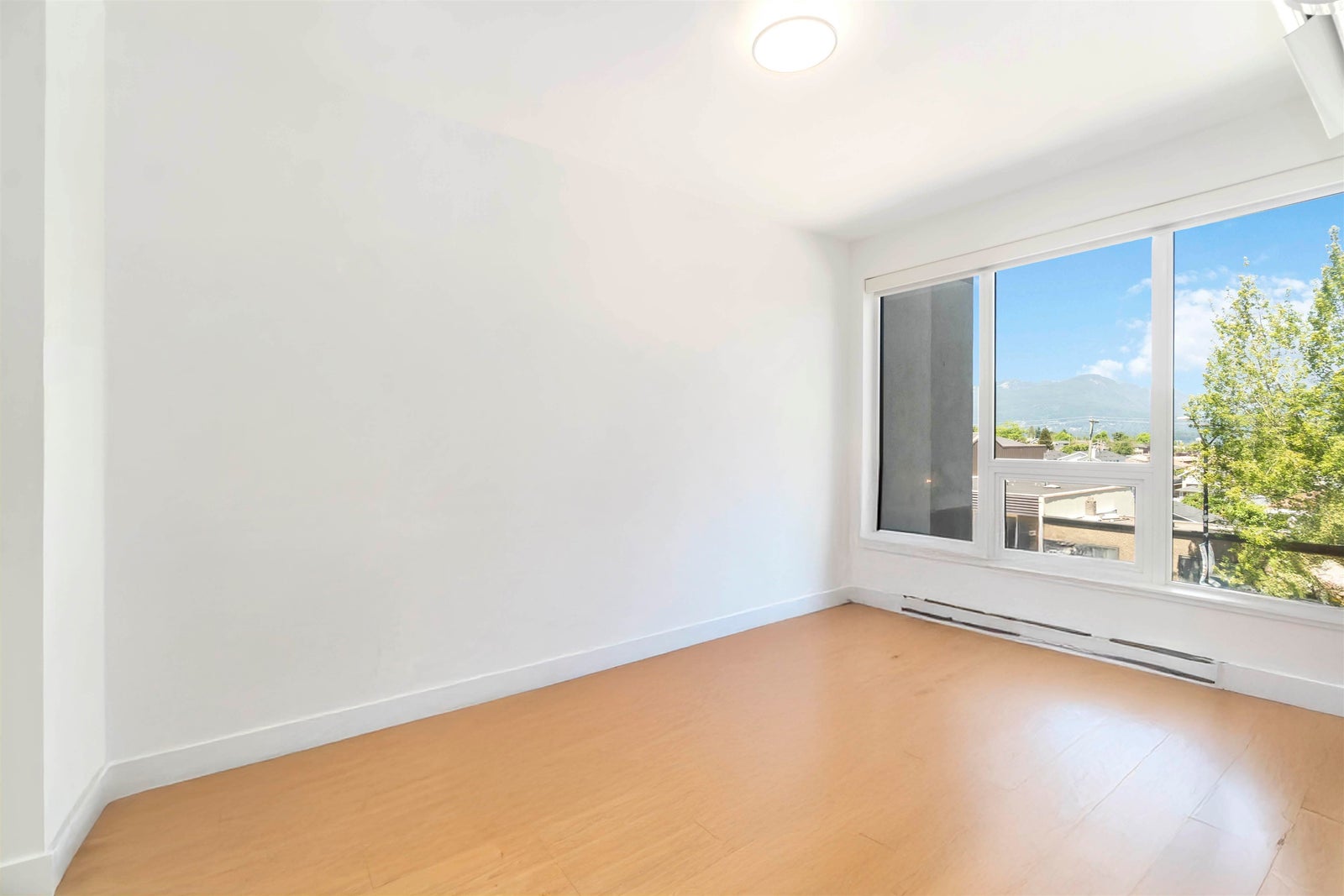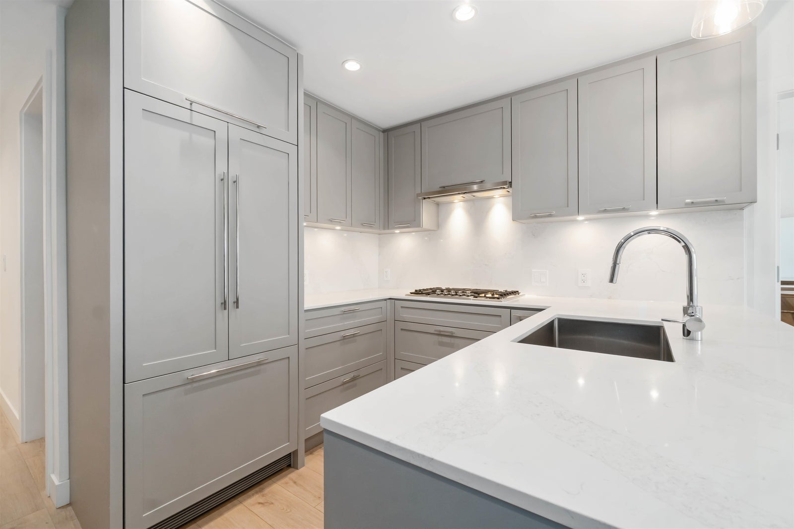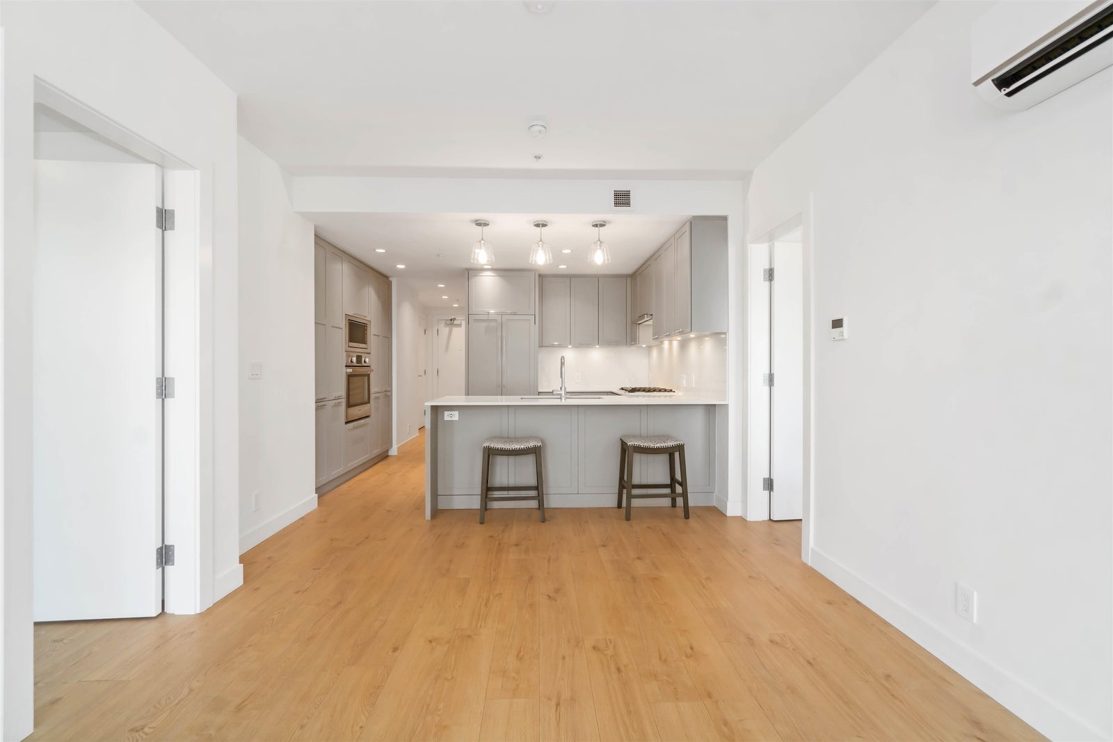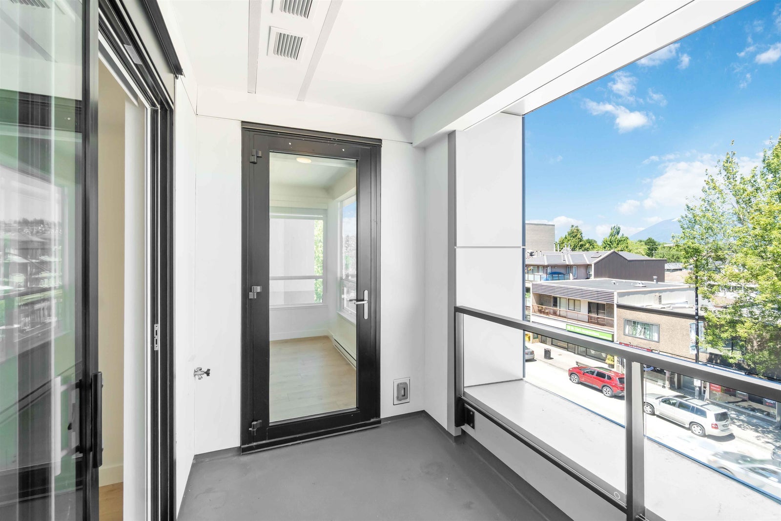 Welcome to Storia by Beedie Living, ideally located in the heart of Burnaby’s vibrant Heights District. This 1198 sq ft 2 bed + den, 3 bath home offers a functional, open concept layout with 9' ceilings, AIR CONDITIONING, roller shades, shaker style cabinets, quartz counters and laminate flooring throughout. The spacious primary bedroom features a walk-through closet and spa-inspired 5-piece ensuite with in-floor heating. Enjoy a chef-inspired kitchen with integrated appliances, wall oven, and pantry. The den is perfect as a home office or guest room. Large second bedroom with ensuite, on opposite side of living space. Private patio with gorgeous VIEWS of the North Shore Mountains! Rooftop terrace w/outdoor seating and panoramic views. Steps to transit, groceries, shopping, and schools.