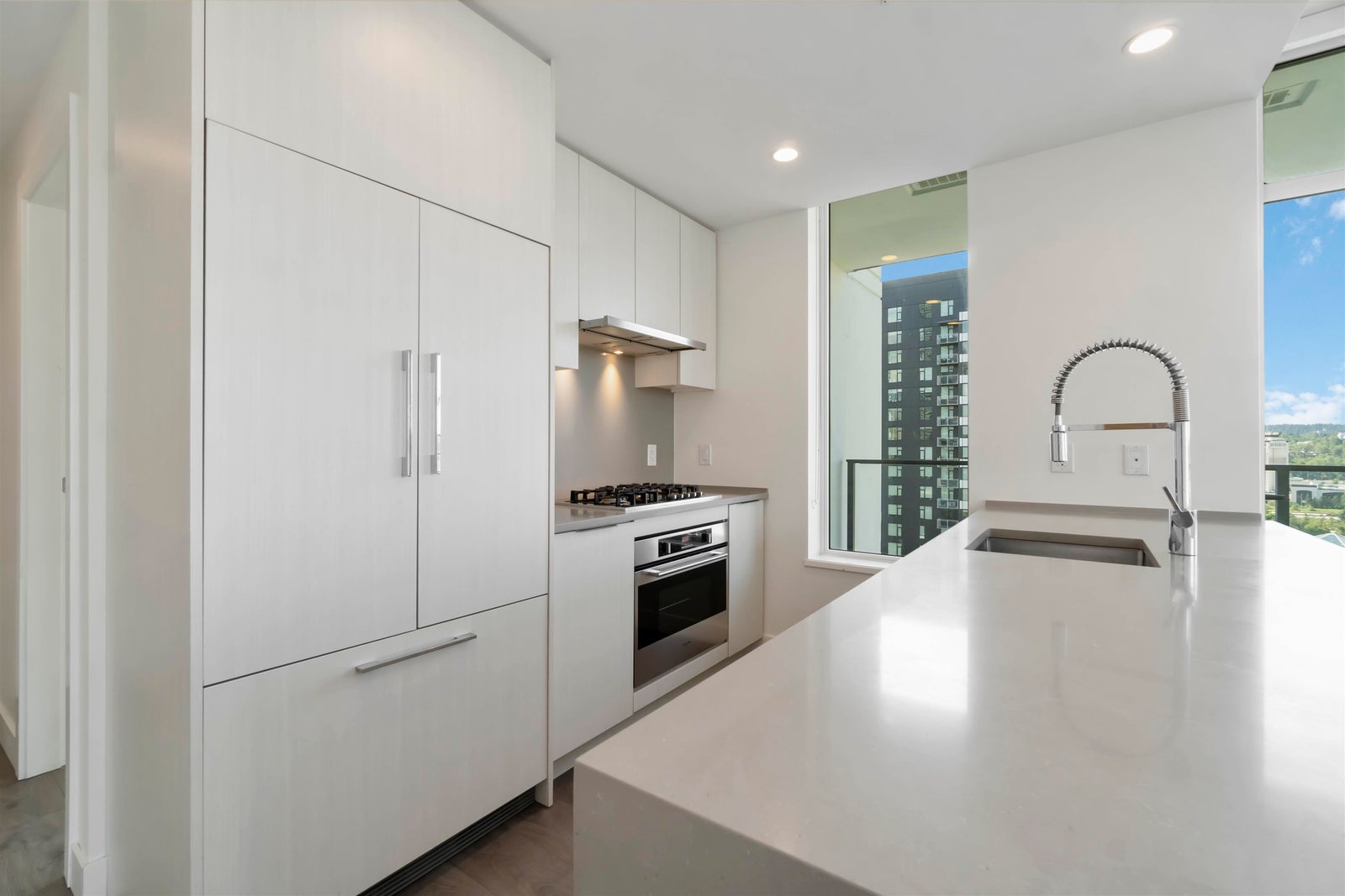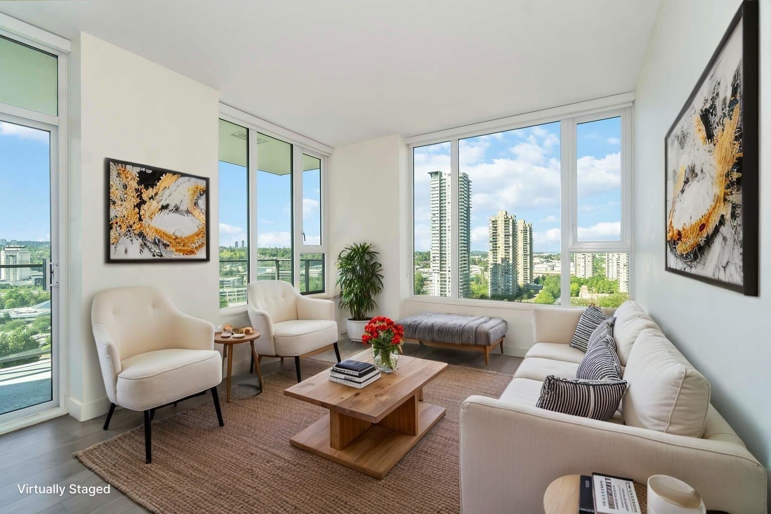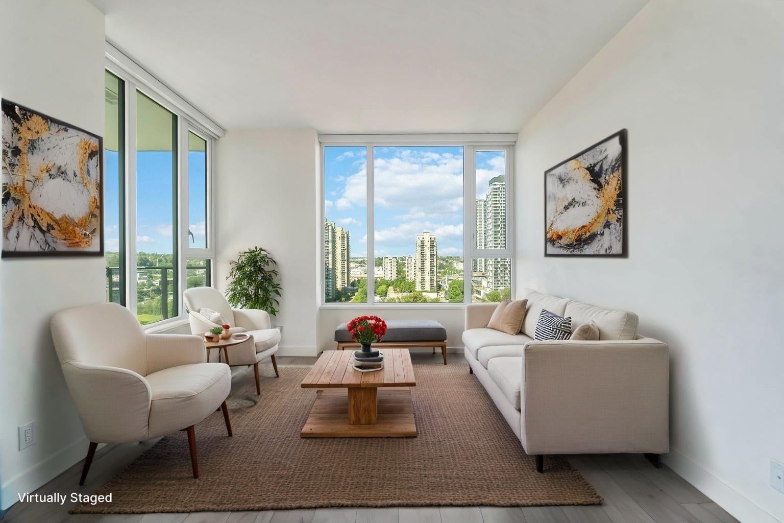 Welcome to Juneau by Amacon! Here's your chance to own an award-winning luxury home in the heart of Brentwood. This air-conditioned, SOUTHWEST facing 2 bedroom, 2 bath CORNER unit offers 878 sq ft of modern living with PANORAMIC CITY & MOUNTAIN VIEWS. Enjoy a bright open-concept layout with high ceilings, a sleek kitchen featuring premium appliances, spa-inspired bathrooms, and a spacious private balcony. This prime location puts you just steps from the SkyTrain, bus stops, The Amazing Brentwood, grocery stores (Save-On-Foods, T&T coming soon, Costco, Whole Foods), banks, restaurants, and more. With quick access to Hwy 1, commuting to Downtown Vancouver, Metrotown, and SFU is a breeze. Resort-style amenities include a fully equipped gym, yoga room, party lounge, and outdoor courtyard.