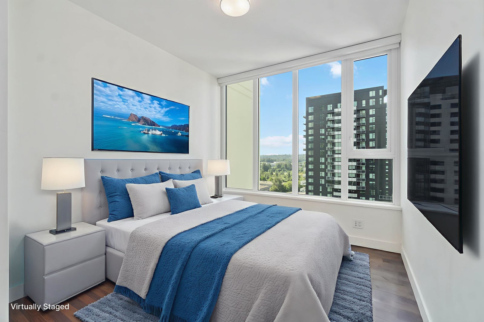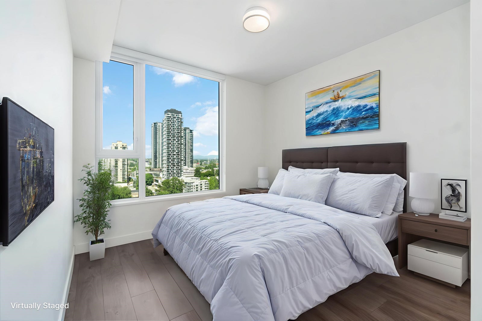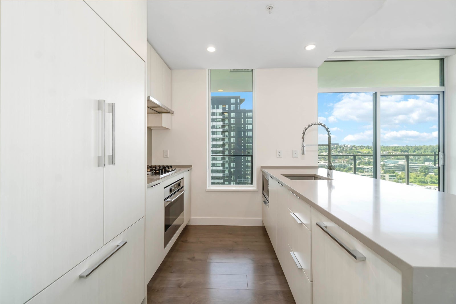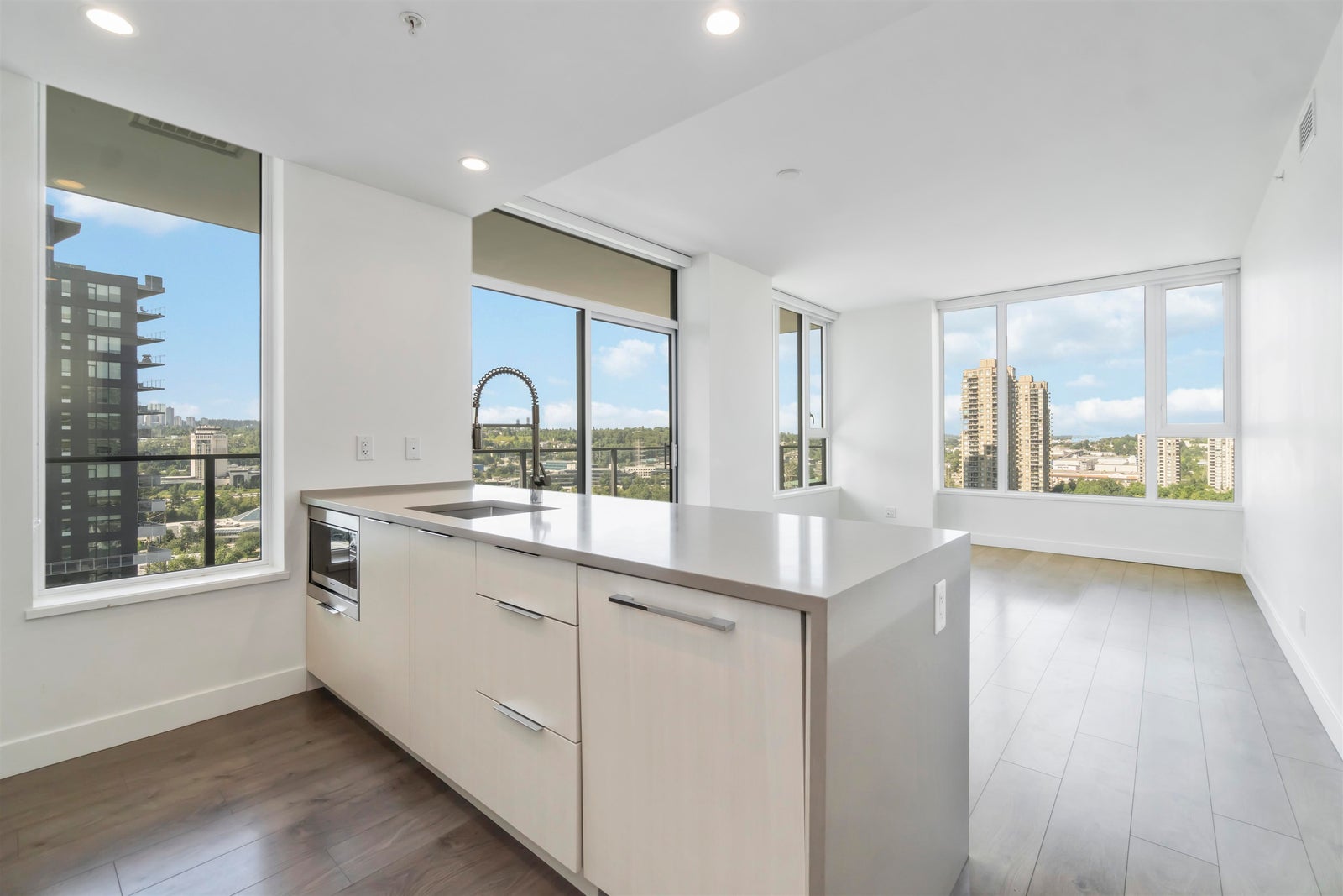 Welcome to Juneau by Amacon! Here's your chance to own an award-winning luxury home in the heart of Brentwood. This air-conditioned, SOUTHWEST facing 2 bedroom, 2 bath CORNER unit offers 878 sq ft of modern living with PANORAMIC CITY & MOUNTAIN VIEWS. Enjoy a bright open-concept layout with high ceilings, a sleek kitchen featuring premium appliances, spa-inspired bathrooms, and a spacious private balcony. This prime location puts you just steps from the SkyTrain, bus stops, The Amazing Brentwood, grocery stores (Save-On-Foods, T&T coming soon, Costco, Whole Foods), banks, restaurants, and more. With quick access to Hwy 1, commuting to Downtown Vancouver, Metrotown, and SFU is a breeze. Resort-style amenities include a fully equipped gym, yoga room, party lounge, and outdoor courtyard.