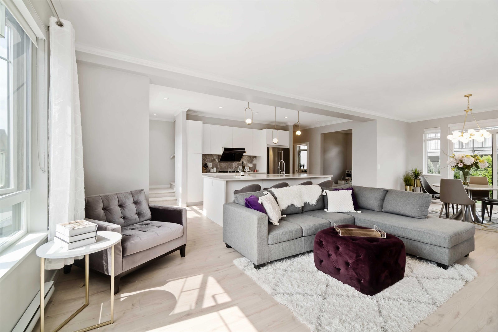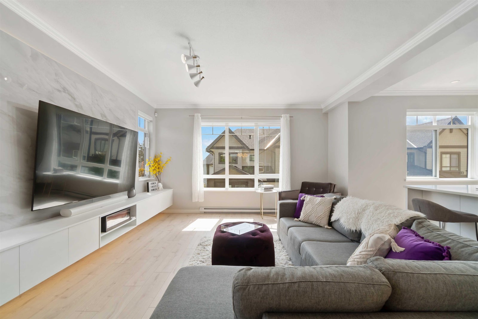 Welcome to Ballantree by Polygon! This craftsman-style 4 bed, 4 bath END UNIT offers 2002 sq ft of bright, spacious living in Coquitlam’s Burke Mountain. Nestled in nature, this like-new home boasts an open kitchen with a huge island, stone counters, marble backsplash, SS appliances, and gas cooktop. Enjoy expansive windows, 9’ ceilings, vinyl floors, flex area - perfect for home office, crown moulding and custom feature wall with built-in cabinetry and a large, fully fenced yard off the main floor. The primary bed features a spa-inspired bath, walk-in closet with custom closet, while the lower level offers a bedroom and bath. Complete with side-by-side garage, EV-ready outlet, and balance of New Home Warranty, all in a family-friendly community close to schools, parks, trails and transit.