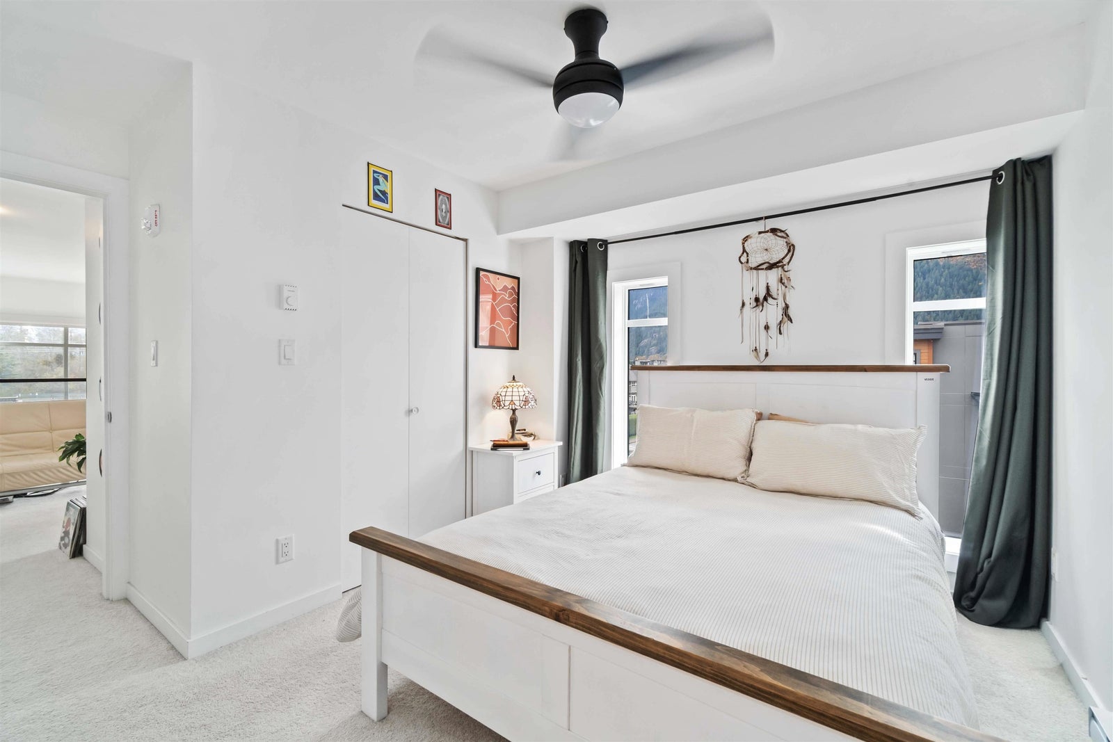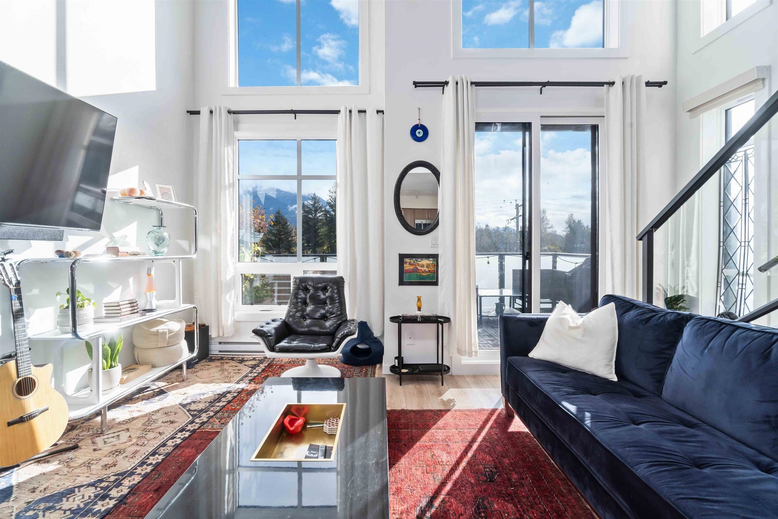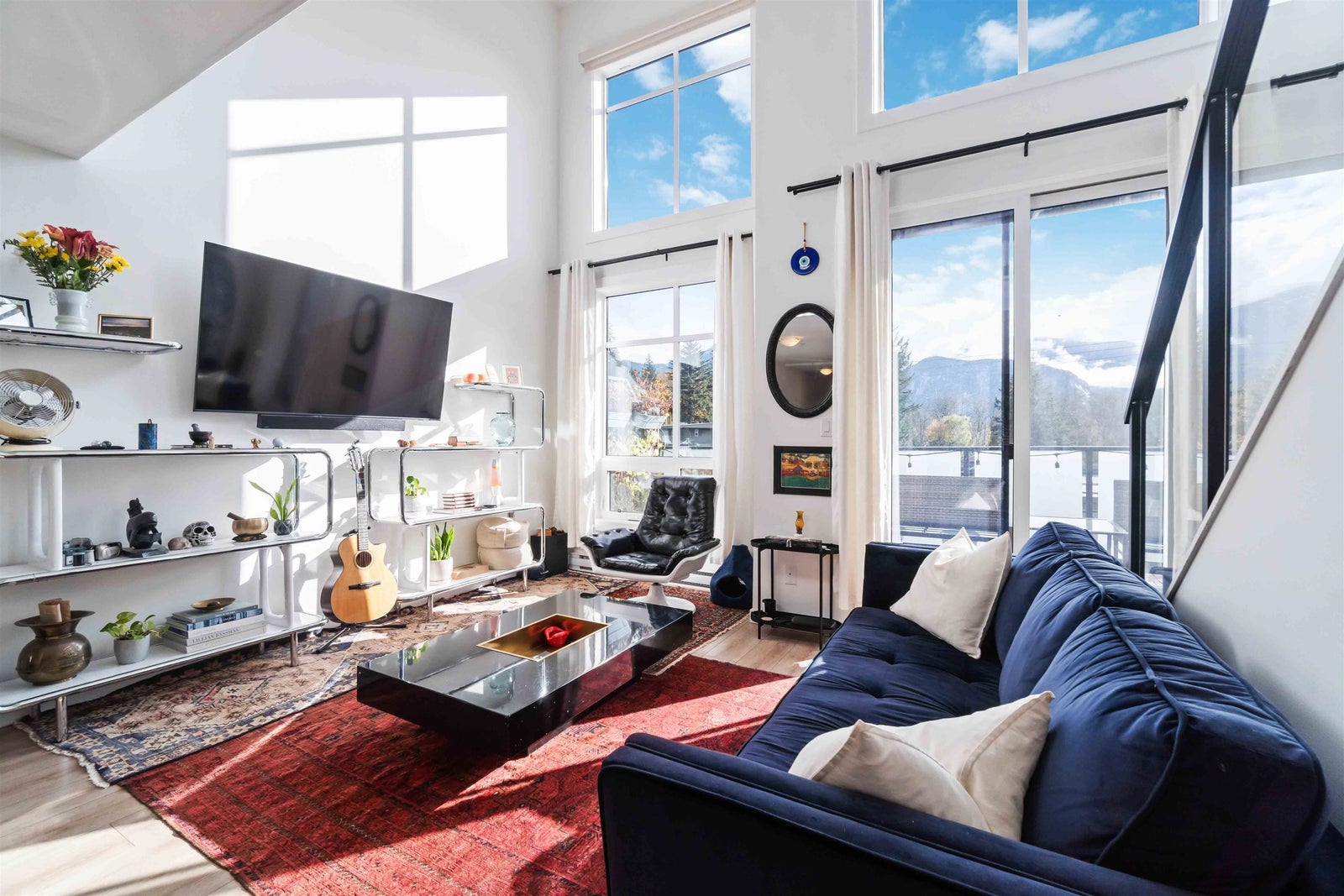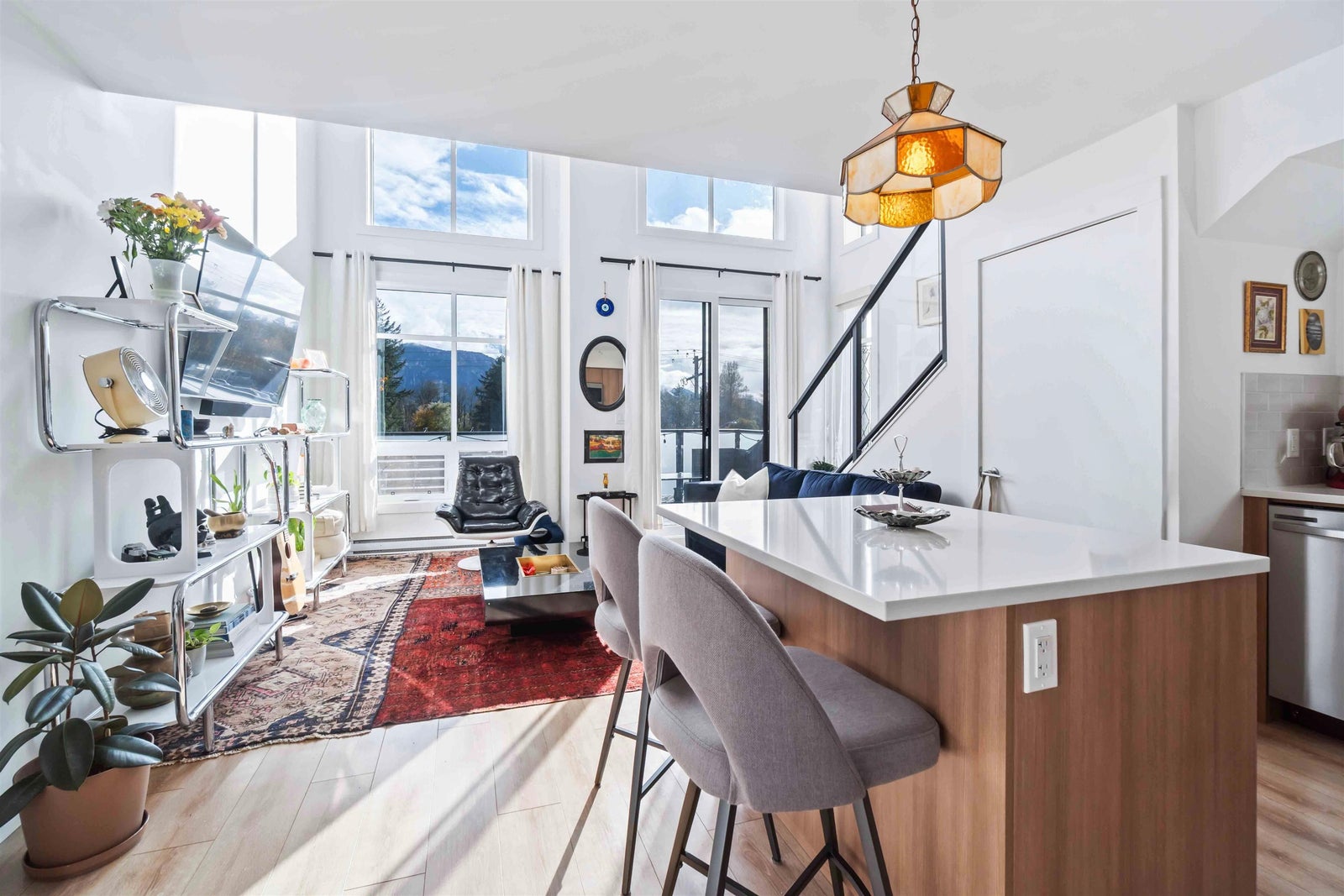 Discover the perfect blend of style and location in this SOUTH-FACING, END UNIT 2 bed + LOFT, 2 bath PENTHOUSE townhome at Breeze! Boasting almost 1200 sq ft of bright, open-concept living space, this home features vaulted ceilings, a large loft ideal for a home office, rec room or gym, and a Scandinavian-inspired kitchen with a generous island, quartz counters, s/s appliances and ample storage. Large primary bedroom with spa-like ensuite and large custom built walk-in closet. Relax or entertain on your private deck with stunning mountain and CHIEF VIEWS. Just steps from trails, shops, cafes and parks, this modern gem offers privacy, comfort, and convenience - a rare find in a vibrant, family-friendly neighbourhood! Hurry, this one won't last long!