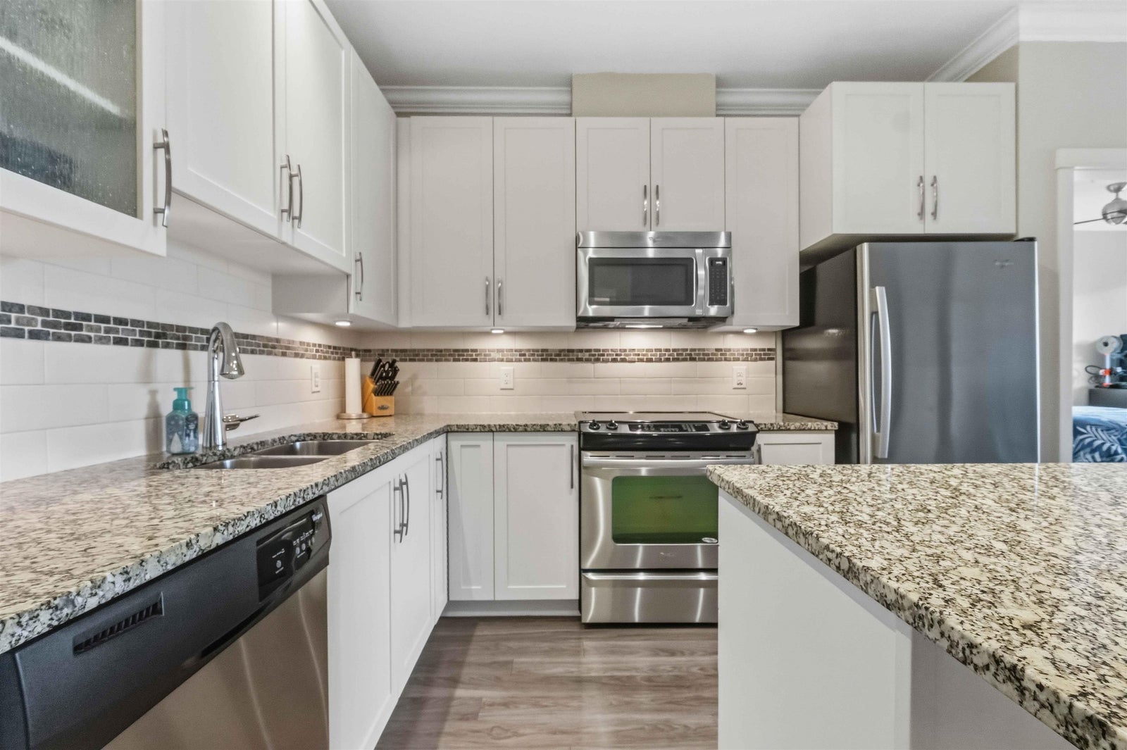 Welcome to the sought-after Athenry Gate in Willoughby Heights. This bright second-floor 2 bed, 2 bath + DEN home offers a smart 942 sq ft layout with 9’ ceilings, crown mouldings, granite counters, stainless steel appliances, soft-close cabinetry, and a clean, contemporary colour scheme. The second bedroom is thoughtfully positioned on the opposite side of the suite for added privacy. Enjoy a large balcony, 2 underground parking stalls, a separate storage locker, and 2 high-speed elevators. Pet-friendly (2 dogs, 2 cats, or 1 of each). Walk to Lynn Fripps Elementary, Yorkson Creek Middle, parks, shops, cafes, and transit. Minutes to HWY 1, Willoughby Town Centre, and the Langley Events Centre. Book your private showing today!