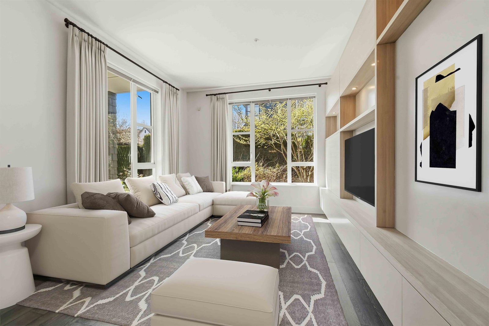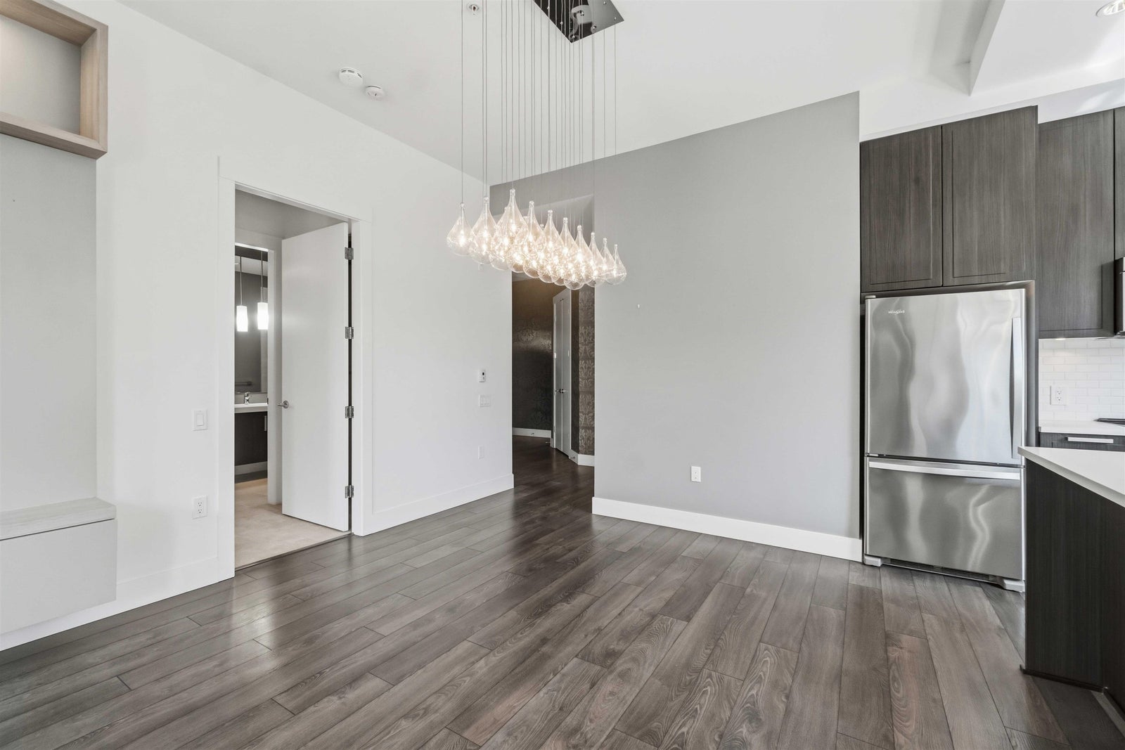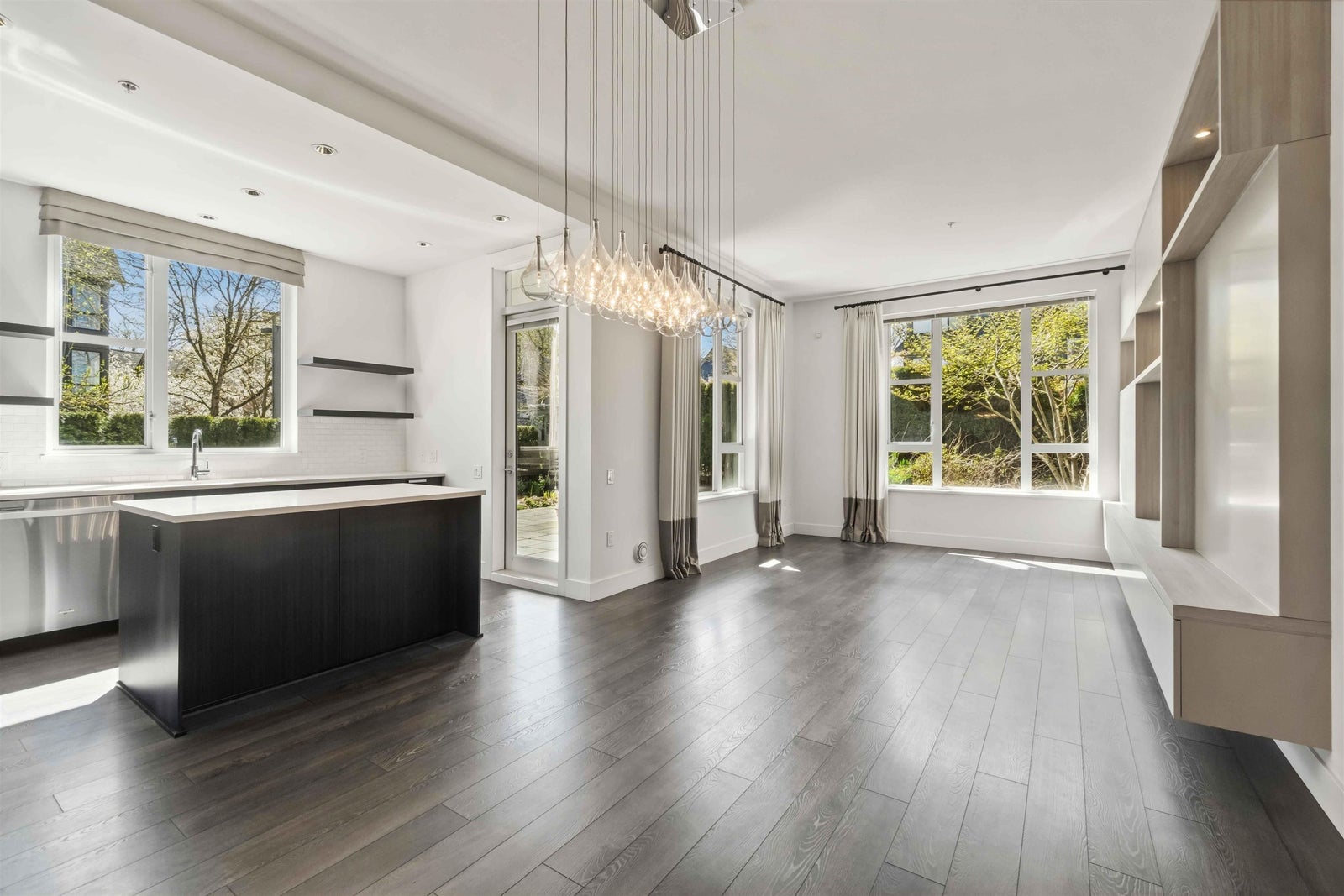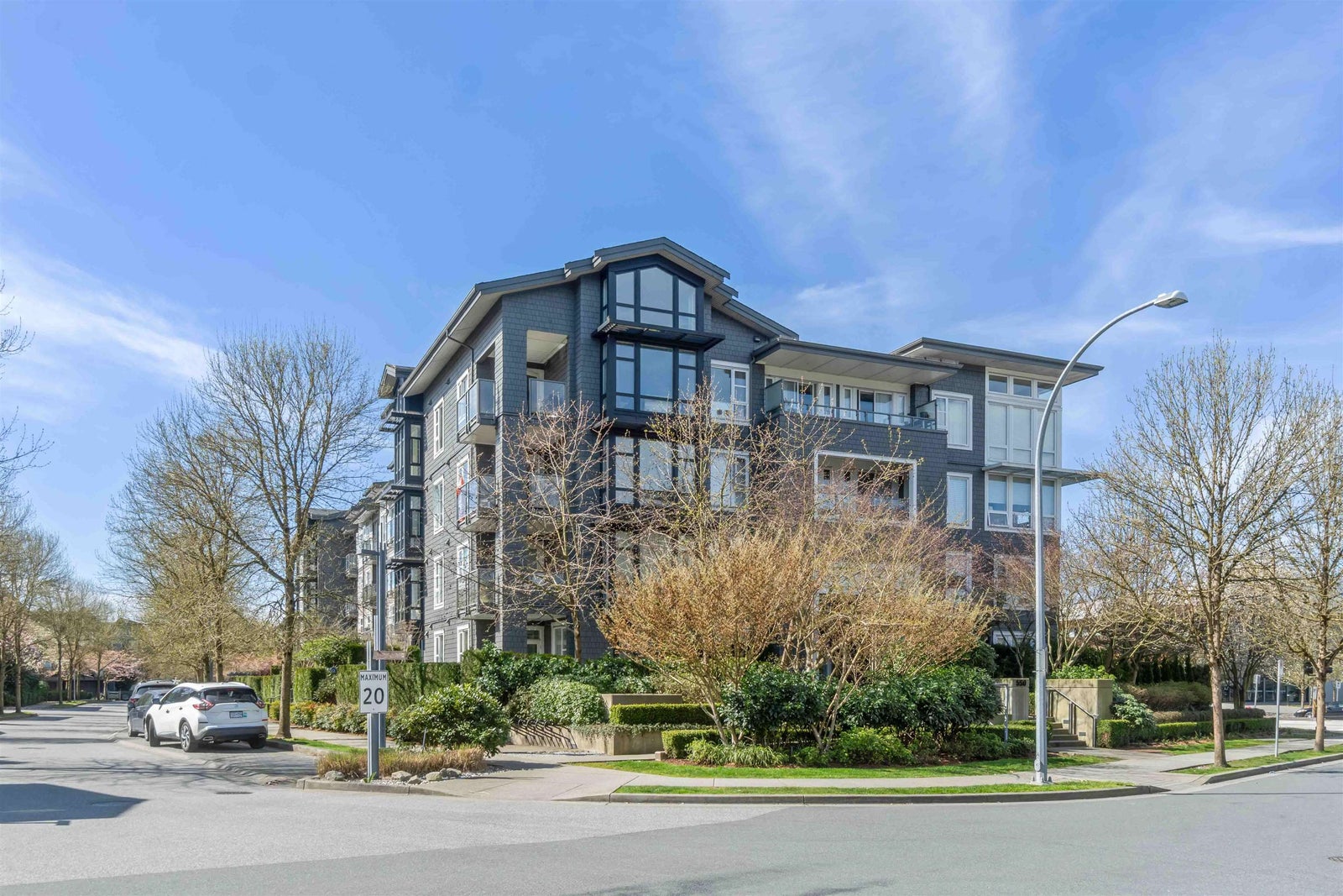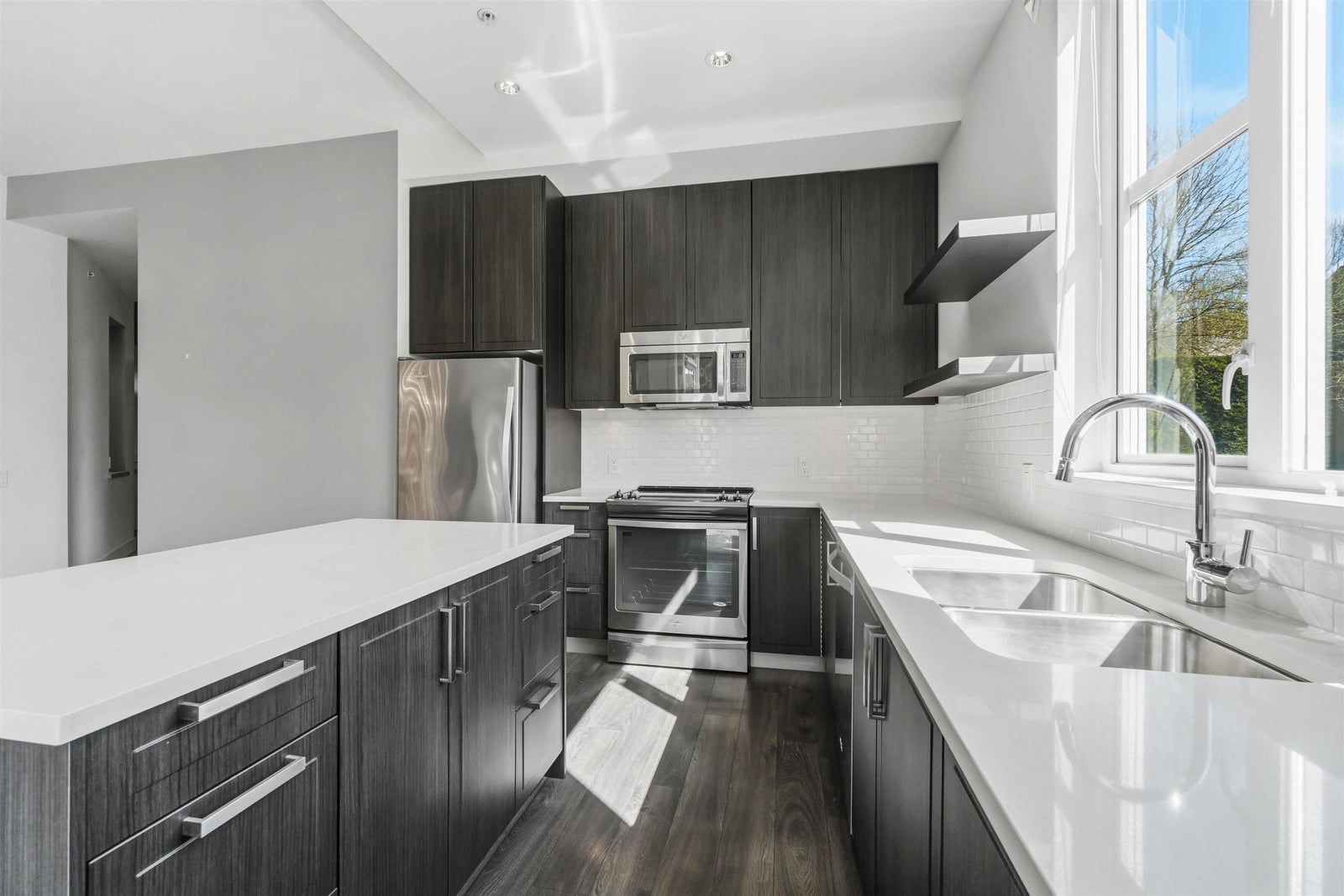 Rare opportunity to own one of the best homes in highly sought-after Fremont Green by Mosaic Homes. This former show home offers 2 bed, 2 bath, and 1,081 sq ft in a bright ground floor corner location. Oversized windows fill the home with natural light, while the open-concept layout offers modern comfort and function. Enjoy a large private patio and fenced yard, plus direct exterior access through the patio for convenient townhouse-style entry. Features include quartz counters, stainless steel appliances, radiant in-floor heating, and a spacious primary with dual sinks in the ensuite. Includes 2 parking and 1 storage. Access the 12,500 sq ft River Club with pool, gym, basketball court, and lounge. Steps to Fremont Village, trails, Pitt River, shops, dining, and commuter routes.